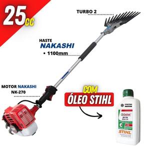 Derriçadeira Profissional Nakashi DT2L270N com Haste 1100mm Motor Nakashi 25,4cc e Kit Turbo 2 + Óleo Castrol Stihl 500ml