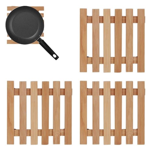 - Design ripado funcional: Permite melhor dissipação de calor e proteção das superfícies. - Madeira de alta qualidade: Material resistente e durável, com acabamento rústico e elegante. - Compacto e prático: Fácil de guardar e transportar, perfeito para uso diário.