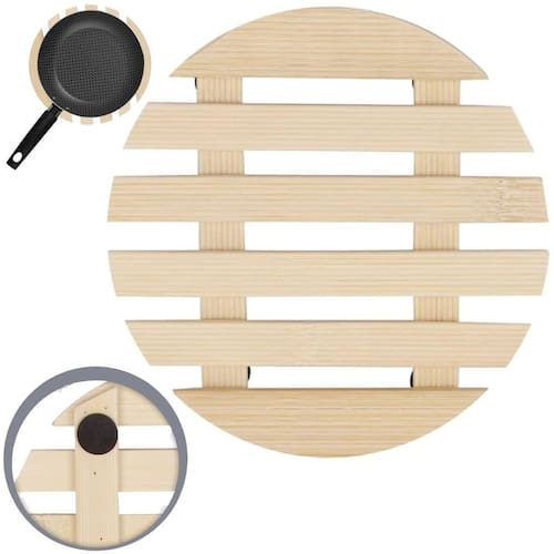 - Design ripado funcional: Permite melhor dissipação de calor e proteção das superfícies. - Madeira de alta qualidade: Material resistente e durável, com acabamento rústico e elegante. - Compacto e prático: Fácil de guardar e transportar, perfeito para uso diário.