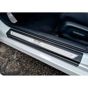 Fabricado em aço inox 304 o kit soleiras, vinil, pedaleiras e descanso de pé além de ajudar a proteger o local onde há o desgaste devido o calçado ficar o tempo todo esfregando, deixará o interior do veículo personalizado e com muito mais estilo.
