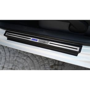 Fabricado em aço inox 304 o kit soleiras, vinil, pedaleiras e descanso de pé além de ajudar a proteger o local onde há o desgaste devido o calçado ficar o tempo todo esfregando, deixará o interior do veículo personalizado e com muito mais estilo.