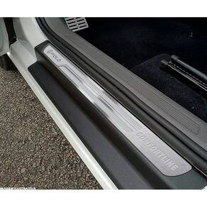 Fabricado em aço inox 304 o kit soleiras, vinil, pedaleiras e descanso de pé além de ajudar a proteger o local onde há o desgaste devido o calçado ficar o tempo todo esfregando, deixará o interior do veículo personalizado e com muito mais estilo.
