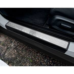 Fabricado em aço inox 304 o kit soleiras, vinil, pedaleiras e descanso de pé além de ajudar a proteger o local onde há o desgaste devido o calçado ficar o tempo todo esfregando, deixará o interior do veículo personalizado e com muito mais estilo.