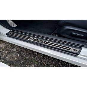 Fabricado em aço inox 304 o kit soleiras, vinil, pedaleiras e descanso de pé além de ajudar a proteger o local onde há o desgaste devido o calçado ficar o tempo todo esfregando, deixará o interior do veículo personalizado e com muito mais estilo.