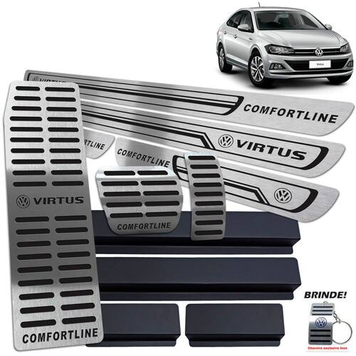 Fabricado em aço inox 304 o kit soleiras, vinil, pedaleiras e descanso de pé além de ajudar a proteger o local onde há o desgaste devido o calçado ficar o tempo todo esfregando, deixará o interior do veículo personalizado e com muito mais estilo.