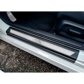 Fabricado em aço inox 304 o kit soleiras, vinil, pedaleiras e descanso de pé além de ajudar a proteger o local onde há o desgaste devido o calçado ficar o tempo todo esfregando, deixará o interior do veículo personalizado e com muito mais estilo.