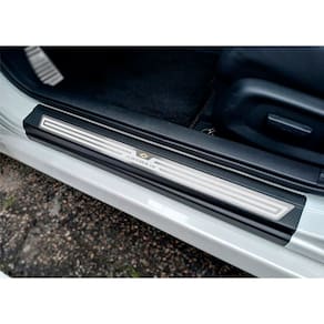 Fabricado em aço inox 304 o kit soleiras, vinil, pedaleiras e descanso de pé além de ajudar a proteger o local onde há o desgaste devido o calçado ficar o tempo todo esfregando, deixará o interior do veículo personalizado e com muito mais estilo.