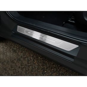 Fabricado em aço inox 304 o kit soleiras, vinil, pedaleiras e descanso de pé além de ajudar a proteger o local onde há o desgaste devido o calçado ficar o tempo todo esfregando, deixará o interior do veículo personalizado e com muito mais estilo.