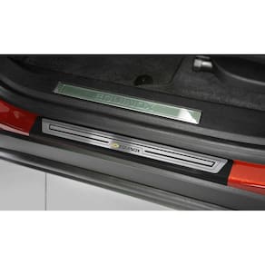 Fabricado em aço inox 304 o kit soleiras, vinil, pedaleiras e descanso de pé além de ajudar a proteger o local onde há o desgaste devido o calçado ficar o tempo todo esfregando, deixará o interior do veículo personalizado e com muito mais estilo.