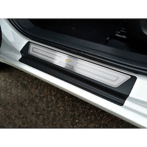 Fabricado em aço inox 304 o kit soleiras, vinil, pedaleiras e descanso de pé além de ajudar a proteger o local onde há o desgaste devido o calçado ficar o tempo todo esfregando, deixará o interior do veículo personalizado e com muito mais estilo.