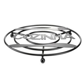 Características: - Produto: Suporte Descanso de Panela; - Composição: Ferro; - Cor: preto; - Redondo com 18cm de diâmetro.