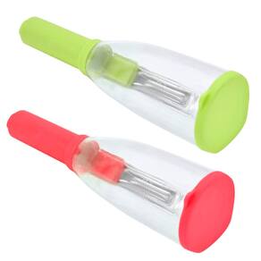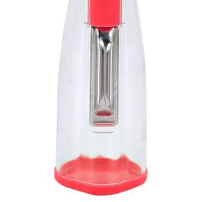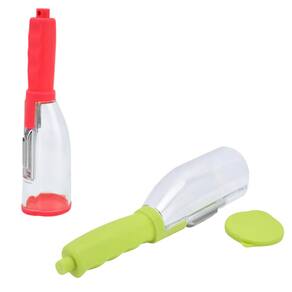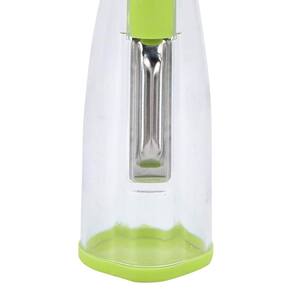 Material: Lâminas de aço inoxidável e alças de ABS de qualidade alimentar Tamanho: 21 x 5 cm Funcionalidade: Descascador com reservatório para armazenar cascas