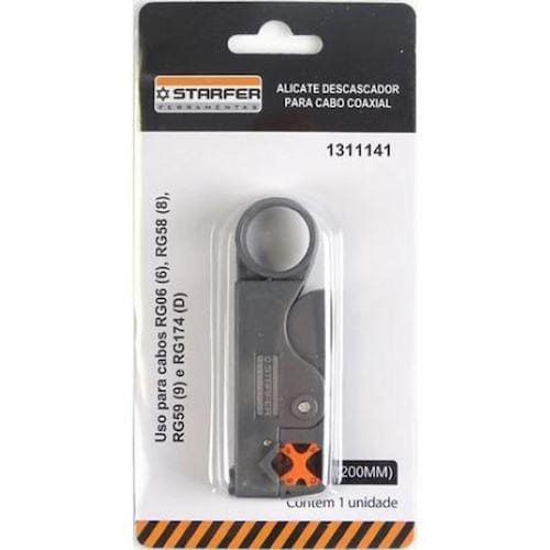 Alicate descascador de fios tipo coaxial da marca STARFER, comprimento 100MM. Indicado para desencapar cabos coaxiais: RG58, RG 59, RG 62, RG06 e RG-174.