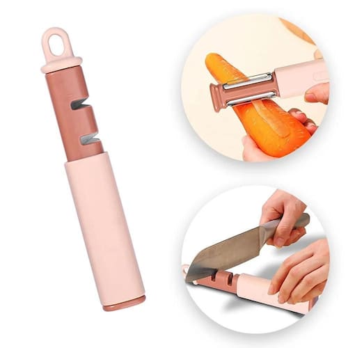 Contém: 01 descascador e afiador de facas 2 em 1 - rosa