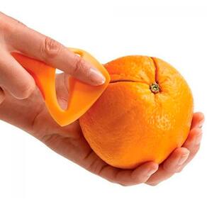 Foi desenvolvido para proporcionar mais agilidade e segurança ao retirar a casca da laranja ou mexerica, sem deixar cheiro nas mãos.