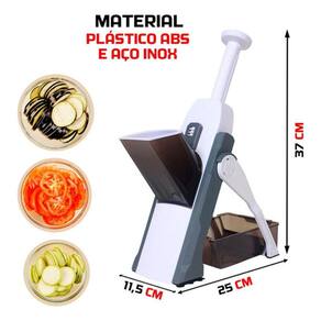 Recursos do Produto: Cortador multifuncional de cozinha com 5 funções Ideal para cortar/fatiar legumes, verduras, frutas e muito mais Material de excelente qualidade, durável e resistente Corte preciso e padronizado do alimento Lâminas super afiadas para máxima eficiência Design moderno, compacto e leve