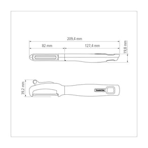 Descascador com lâmina de aço inox que proporcionam resistência durante o uso.