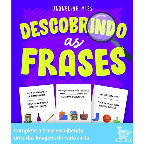 Este livro-caixinha tem por objetivo trabalhar e desenvolver a imaginação e o vocabulário de crianças que estão iniciando a alfabetização. São 50 cartas com frases divertidas e três imagens. Só uma das imagens é a resposta correta. De forma interativa e lúdica, a criança associará as características descritas na frase com a figura que representa a resposta. Dessa forma, ela estará fazendo a leitura e a interpretação e completando o trecho faltante a partir da associação das características da frase e da imagem.
