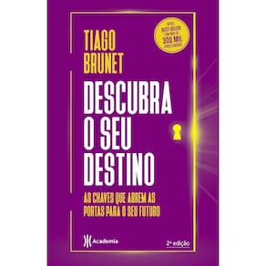 Título do livro : Descubra o seu destino Subtítulo do livro : As chaves que abrem as portas para o seu destino Autor : Brunet, Tiago Idioma : Português Editora do livro : Editora Planeta do Brasil Ltda. Capa do livro : Mole Ano de publicação : 2018 Quantidade de páginas : 192 Altura : 210 mm Largura : 140 mm Peso : 200 g Com páginas para colorir : Não Com realidade aumentada : Não Gênero do livro : Autoajuda Subgêneros do livro : Psicologia Tipo de narração : Conto Idade mínima recomendada : 18 anos Data de publicação : 02-10-2018