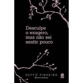 Título do livro : Desculpe o exagero, mas não sei sentir pouco Autor : Pinheiro, Geffo Idioma : Português Editora do livro : Astral Cultural Capa do livro : Mole Ano de publicação : 2022 Quantidade de páginas : 144 Altura : 205 mm Largura : 135 mm Peso : 200 g Gênero do livro : Juvenil Subgêneros do livro : Poesia;não ficção juvenil;autoajuda Data de publicação : 07-11-2022