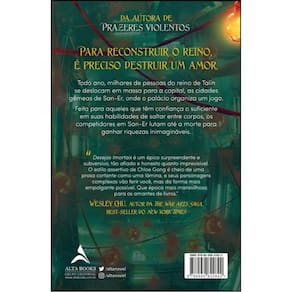 da autora de Prazeres Violentos Para reconstruir o reino, é preciso destruir um amor. Todo ano, milhares de pessoas do reino de Talin se deslocam em massa para a capital, as cidades gêmeas de San-Er, onde o palácio organiza um jogo. Feito para aqueles que têm confiança o suficiente em suas habilidades de saltar entre corpos, os competidores em San-Er lutam até a morte para ganhar riquezas inimagináveis. “Desejos Imortais” é um épico surpreendente e subversivo, tão afiado e honesto quanto imprevisível. O estilo assertivo de Chloe Gong é cheio de uma prosa cortante como uma lâmina, e seus personagens complexos vão ferir você, mas da forma mais empolgante possível. Que época mais maravilhosa para os amantes de livros.” Wesley Chu, autor da “The War Arts Saga”, best-seller do “New York Times” Uma estreia na fantasia adulta inspirada na peça “Antônio e Cleópatra” de Shakespeare, com disputas por poder, sangue derramado e romance, em meio a jogos mortais. A princesa Calla Tuoleimi aguarda, escondida. Cinco anos atrás, um massacre matou seus pais e deixou o palácio de Er vazio… E a assassina foi ela mesma. Antes que as forças do Rei Kasa em San possam capturá-la, ela planeja terminar o que começou e derrubar a monarquia. Seu tio recluso sempre recebe o vencedor dos jogos para um aperto de mãos; então, se ela vencer, terá enfim a oportunidade de matá-lo. Anton Makusa é um aristocrata exilado. Seu amor de infância está em coma desde que ambos foram expulsos do palácio, e ele está mergulhado em dívidas na tentativa de mantê-la viva. Felizmente, ele é um dos melhores saltadores do reino, flutuando à vontade de corpo em corpo. Sua última chance de salvá-la é entrar nos jogos e vencer. Calla então se encontra em uma aliança inesperada com Anton, e recebe ajuda do filho adotivo do Rei Kasa, August, que quer corrigir as aflições de Talin. Mas os três têm objetivos muito diferentes, mesmo quando a parceria de Calla e Anton se transforma em algo que consome tudo. Antes que os jogos terminem, Calla precisa decidir pelo que está lutando: seu amante ou seu reino.