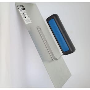 Espátula para acabamentos, lâmina de Aço inoxidável com largura de 5 polegadas (12,5cm). Cabo de madeira envernizado.
