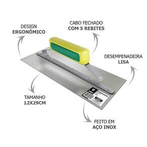 Contém: - 1 Desempenadeira Aço Inox Galo 12x29cm.