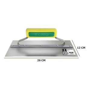 Descrição: A Desempenadeira Aço Inox Lisa Galo 12x29cm foi desenvolvida para profissionais que buscam precisão e qualidade no acabamento de superfícies com gesso. Seu corpo é fabricado em aço inoxidável, garantindo resistência à corrosão e maior durabilidade. O cabo fechado em polipropileno amarelo é fixado à base com cinco rebites, proporcionando uma pegada segura e confortável, mesmo durante longos períodos de uso.