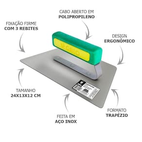 Contém: 1 desempenadeira de aço inox trapézio 24x13x12cm.