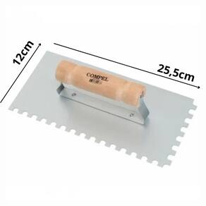 ATENÇÃO: As cores dos produtos podem sofrer variações em função das características do monitor. A Desempenadeira de aço dentada com cabo de madeira 12 x 25,5 cm da Compel é ideal para aplicação de argamassas, massa corrida, texturas, entre outros. Auxilia também na preparação e no nivelamento de superfícies. A Desempenadeira da Compel proporciona facilidade e conforto na execução dos serviços.