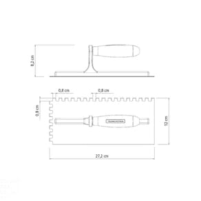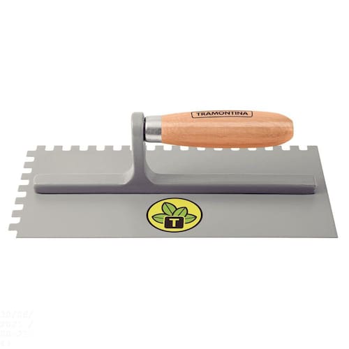 Para projetos mais completos e um acabamento diferenciado, a desempenadeira lisa com dentes Tramontina em aço com acabamento zincado e cabo de madeira é a melhor opção. Produzida em aço carbono especial, ela garante alta qualidade e resistência. Possui superfície polida e acabamento zincado. Apresenta ainda dentes que são utilizados para formar sulcos na massa, para assentamento de lajotas e azulejos. Possui ainda um confortável cabo de madeira envernizada de origem renovável. Orientações - Fabricada em aço carbono especial de alta qualidade.- Recebe pintura eletrostática a pó, que tem uma melhor apresentação visual e maior proteção contra oxidação.- Possui dentes que são utilizados para formar sulcos na massa, para assentamento de lajotas e azulejos.- O cabo desta ferramenta, além de possuir ótima resistência, é produzido com madeira de origem renovável.- Cabo com acabamento envernizado, para um melhor acabamento e apresentação do produto. A camada protetora em verniz incolor realça sua tonalidade, concedendo brilho e um toque mais liso ao produto. Características Gerais EAN13 7891117022428 DUN14 17891117022425 NCM 8205.59.00 Peso Líquido 0,3770 kg. Peso Bruto 0,3770 kg. Metragem 0,001200 m³. Dimensões Embalagem (Compr. X Larg. X Alt.) 272x 120x 84 mm. Dimensões Produto (Compr. X Larg. X Alt.) 272x 120x 82 mm. Cor 1 A9A9A9 Hexa Observações - A desempenadeira é utilizada na construção civil para aplicar, nivelar e espalhar uniformemente a argamassa para revestimentos.Os dentes são utilizados para formar sulcos na massa, para assentamento de lajotas e azulejos.- Para descarte dos produtos e embalagens siga as orientações de reciclagem vigentes.