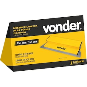 Marca: VonderCódigo: 3344025000Conteúdo da embalagem1 Desempenadeira.Destaques e diferenciais:Flexível e eficiente, é fabricada em plástico ABS e conta com lâmina em aço INOX, proporcionando maior durabilidade. Aplicações e dicas de uso:Indicada para a realização de acabamentos de massa corrida em paredes, tetos e outras superfícies. Para facilitar o alcance em locais mais altos, permite utilização com o cabo extensor 33.44.112.190 - não acompanha . Para utilização com o cabo extensor é necessário adquirir o suporte 33.44.000.500 - não acompanha .Material da lâmina: Aço inox Material da estrutura: Plástico ABS Dimensões L x C : 250 mm x 155 mm Massa aproximada peso kg : 0,28 kg Garantia - E CDC :Garantia legal: 90 dias