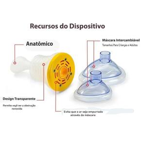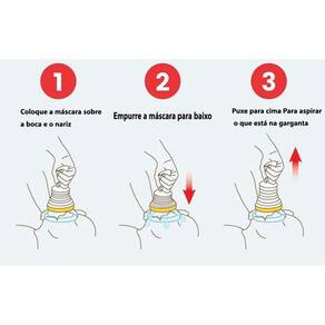 O kit inclui duas máscaras, uma para adultos e outra para crianças. Com um design fácil de usar, esse dispositivo pode ser utilizado por uma única pessoa em casos de emergência de asfixia. As máscaras vêm equipadas com capas de proteção facial para atender às diferentes necessidades de cada usuário.
