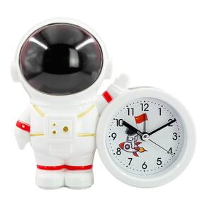 Material: ABS+vidro Tamanho: 13,8* 15* 7,2 cm Peso: 168,5 g Design divertido de astronauta: este despertador exclusivo apresenta um astronauta encantador segurando um pequeno relógio, com um design divertido de foguete e bandeira no mostrador do relógio, tornando-o uma adição divertida ao quarto de qualquer criança. Material durável: feito de ABS e vidro de alta qualidade, este relógio foi feito para durar, proporcionando um design robusto e leve para o uso diário. Mostrador de relógio fácil de ler: O relógio possui um mostrador simples e claro com números e ponteiros em negrito, garantindo que as crianças possam ler a hora com facilidade. Perfeito para crianças e estudantes: com seu design criativo e envolvente, este relógio é ideal para crianças, tornando o tempo de aprendizado divertido enquanto ilumina seu quarto ou área de estudo. Ótimo para decoração de quartos: este relógio com tema de astronauta não serve apenas como despertador, mas também como um item de decoração extravagante que adiciona personalidade a qualquer espaço.