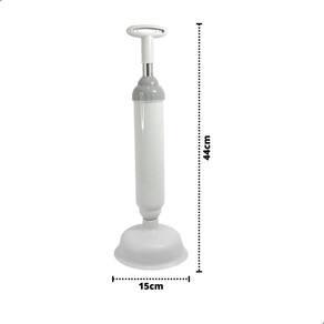 - Com aproximadamente 44cm de comprimento e 15cm de diâmetro, o desentupidor possui um tamanho adequado para alcançar áreas de difícil acesso e exercer a pressão necessária para desobstruir os canos.