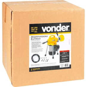 1 Desentupidora, acompanha: 1 chave, 7 lances de 2,3 metros de cabo flexível de 16 mm, 1 lance de 5 metros de cabo flexível de 8 mm e 9 acessórios para trabalhos diversos.