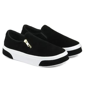 Desfile em Estilo com o Slip On Feminino em Camurça e Solado Com Tiras Preto - 34 - Preto