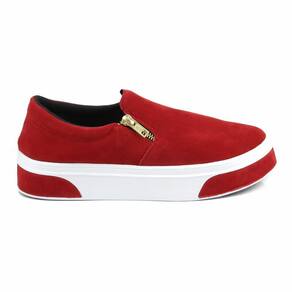 Desfile em Estilo com o Slip On Feminino em Camurça e Solado Com Tiras Vermelho - 35 - Vermelho