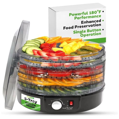 5 Bandejas de camada para circulação aprimorada de alto calor e fluxo de ar percorrem cada bandeja Bandejas resistentes ao calor e à máquina de lavar louça Funcionam com uma ampla variedade de alimentos Carne, peixe, aves, frutas, legumes e mais uso de carnes para adicionar ensopados Sopas, etc. Perfeito para fazer batatas fritas veganas sem óleo Faça carne seca caseira Simplesmente insira sua comida nas bandejas e pressione o botão para ativar um nível e saudável de preparação de alimentos. O desidratador de cozinha NutriChef trabalha efetivamente para remover a umidade, secar os alimentos e reduzir a deterioração. As bandejas de vários níveis permitem um fluxo de ar aprimorado que desidrata, prolongando a vida útil e a conservação dos alimentos. Seus alimentos durarão mais e a remoção do teor de umidade é muito mais benéfica do que a conserva ou o congelamento. A desidratação com o NutriChef retém até 97 do valor nutricional dos alimentos e é testada cientificamente para reduzir os tempos de deterioração e o melhor de tudo, ainda é gostoso Depois de seca, sua comida retém vitaminas, minerais e sabor autênticos A operação simples do botão de um toque facilita ainda mais a preparação de alimentos como carne, peixe, aves, frutas, legumes e muito mais Economize tempo, economize dinheiro e economize um espaço valioso no gabinete, pois o processo de desidratação diminui sua comida, tornando a ideal para zenamento de alimentos ou estocagem para o inverno. Ele funciona muito bem com uma grande variedade de grupos de alimentos e é perfeito para fazer batatas fritas saudáveis e sem óleo para as crianças ou carne seca espessa para o pai. Reduza a deterioração e desfrute da preservação aprimorada dos alimentos com o desidratador NutriChef Kitchen Marca: Não Informado
