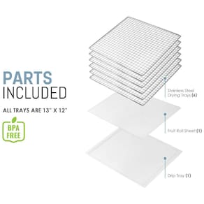 Economize tempo e dinheiro criando seus próprios lanches saudáveis de forma rápida e fácil em casa com o desidratador de alimentos Elite Platinum Platinum 6 para lanches. Seu design elegante e contemporâneo possui 480 watts de poder de secagem e gera velocidade e qualidade máximas para desidratação de frutas, legumes e carne seca. Nunca foi tão fácil preparar um lote de chips de banana, maçã ou couve ou secar seus legumes, ervas e até flores favoritas possui uma porta basculante com janela de visualização clara para assistir ao progresso da secagem e um painel de controle digital com botões de timer e temperatura ajustáveis. Inclui peças que podem ser lavadas na máquina de lavar louça 6 bandejas de desidratação removíveis em aço inoxidável, folha de rolo de frutas e uma bandeja coletora.