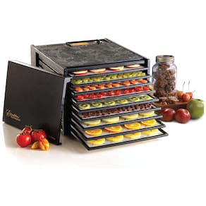 Desidratador de alimentos elétrico Excalibur 3900B com 9 bandejas com termostato ajustável Controle preciso de temperatura Secagem mais rápida e eficiente Inclui guia de desidratação fabricado nos EUA, 9 bandejas, preto
