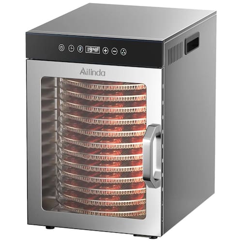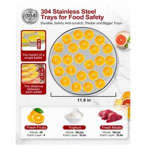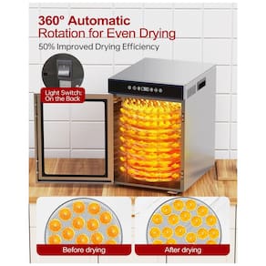 O Desidratador de Alimentos Rotativo de Aço Inoxidável é ideal para desidratar frutas, carnes, ervas e vegetais de forma eficiente e uniforme. Com 12 bandejas de aço inoxidável e um design rotativo de 360°, este desidratador garante uma distribuição de calor mais uniforme e melhora a eficiência de secagem em 50%.