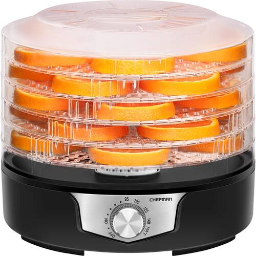 ConjuntoChefman Desidratador de alimentos com 5 bandejas, bandejas transparentes de 28 cm, controle de temperatura ajustável, cria lanches secos para a família, prepare frutas, carne seca, legumes, carnes e - Desidrate seus ingredientes favoritos: desidrate frutas, legumes, carnes e ervas para pratos saudáveis e únicos. Crie lanches ou acompanhamentos salgados para o seu próximo jantar ou festa em família. - CONTROLE DE TEMPERATURA AJUSTÁVEL: Desidrate facilmente sua comida com o mostrador de controle de temperatura ajustável. Defina sua temperatura até 185 F para alimentos feitos do seu jeito. - Bandejas versáteis: as bandejas espaçosas de 29 cm podem caber suas frutas, vegetais e carnes facilmente. Com alturas variáveis da bandeja e um design transparente conveniente, você pode facilmente posicionar as cinco bandejas e ver seus ingredientes. - Fácil de limpar: as bandejas e o visor preto e de aço inoxidável permitem uma limpeza conveniente. Depois de terminar a desidratação, basta limpar o seu aparelho e desfrutar de suas deliciosas guloseimas. - Recursos: aprovado pela CETL com tecnologia de segurança avançada para durabilidade duradoura e garantia de 1 ano fornecida pela Chefman, para que você possa comprar sem preocupações - nós protegemos. Para obter informações sobre como usar seu produto, role para baixo para obter um Guia do usuário em PDF. 350 Watts/120 Volts – RJ43-ROB-5