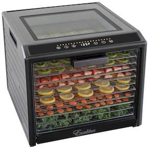 Material: aço inoxidável, vidro Cor: Grafite Potência: 800 watts Dimensões do produto: 20,67D x 40, x 43, Tensão: 120 Peso do item: 12,2 quilos Formato: Retangular Característica material:para alimentos Número de bandejas: 10 A máquina de lavar louça é segura: não Peso do item: 12,2 quilos Fabricante: Excalibur Número do modelo do item: DH10SSSS13