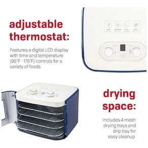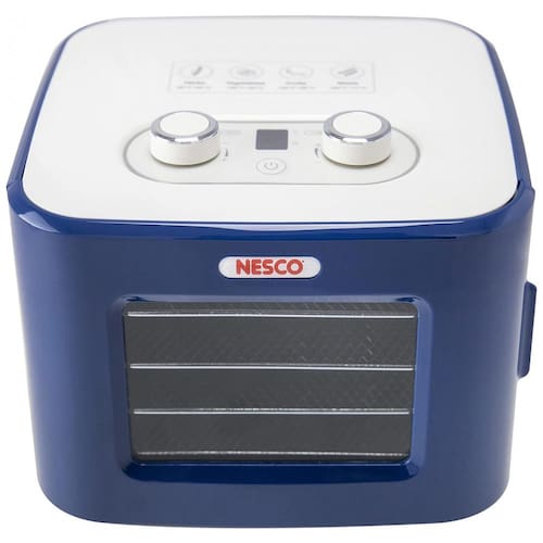 POTÊNCIA DE SECAGEM DE 400 WATT Este desidratador de alimentos de 4 bandejas de 500 watts seca em horas em vez de dias, apresentando um interior todo em metal que retém o calor com eficiência para um tempo de secagem mais curto TERMOSTATO AJUSTÁVEL Apresenta um display LED digital com controles de tempo e temperatura fáceis de usar que oferecem a versatilidade e a precisão necessárias para secar uma variedade de alimentos 35 a 75 C JANELA DE VISUALIZAÇÃO Permite que o usuário fique de olho no processo de secagem facilmente sem abrir a porta, garantindo que os alimentos sejam desidratados para sua crocância ideal mais rapidamente, economizando tempo e dinheiro BANDEJAS DE SECAGEM DE MALHA Inclui 4 bandejas de secagem de malha e bandeja de gotejamento para facilitar a limpeza O AJUSTE PERFEITO NESCO FD 41B Snackmaster Jr. é a adição de cozinha de tamanho perfeito para criar lanches caseiros saudáveis que todos irão gostar