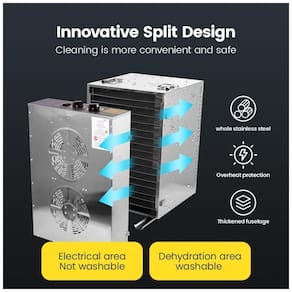 Especificações do produto: Material: Aço inoxidável Cor: prateado Potência: 1500 watts Dimensões do produto: 41,99 cm x 54,48 cm x 62,99 cm Voltagem: 110 Forma: Retangular Característica do material: seguro para alimentos Número de bandejas: 16 Frequência de operação: 60 Hz Faixa de temperatura: 40-90 graus Celsius Pode ser lavado na máquina de lavar louça: Não Fabricante: Cercker Número do modelo do item: CE-16