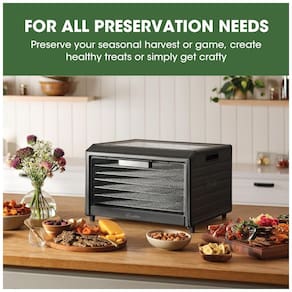O Desidratador de Alimentos Excalibur Performance Series de 6 bandejas é o companheiro perfeito para quem deseja preservar alimentos de forma saudável e eficiente. Com uma ampla faixa de temperatura ajustável e um temporizador ajustável de até 80 horas, este desidratador oferece controle preciso sobre o processo de secagem. As 6 bandejas revestidas em aço inoxidável fornecem 890cm2 de espaço de secagem, permitindo desidratar grandes quantidades de alimentos simultaneamente, economizando tempo e esforço. Equipado com tecnologias avançadas como Hyperwave e Paralexx, este desidratador garante circulação constante de ar e distribuição uniforme de calor em todas as bandejas, resultando em desidratação eficiente e consistente para produtos finais excepcionais. Com a porta de vidro levadiça e a janela de visualização superior, é possível observar o processo de secagem sem abrir a unidade, mantendo um ambiente de secagem estável e garantindo que você obtenha resultados perfeitos sempre. Além disso, o painel frontal com tela sensível ao toque LED facilita a operação, proporcionando fácil acesso a controles intuitivos de temperatura, tempo e outras configurações. Limpar depois de suas aventuras de desidratação é muito fácil. Basta lavar à mão as bandejas e a tela de poliéster com água morna e sabão, enxaguar e secar ao ar. Este desidratador vem com várias bandejas inclusas e um livro Preserve It Naturally, um guia completo que irá inspirar sua criatividade e ajudá lo a explorar diversas receitas e técnicas de preservação. Eleve seus esforços culinários e embarque em uma jornada de preservação de sabores naturais e criação de lanches nutritivos com o Desidratador de Alimentos Excalibur Performance Series de 6 bandejas.