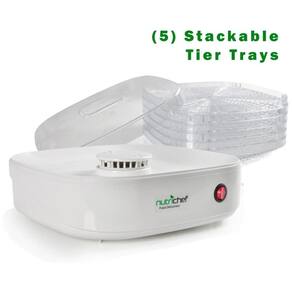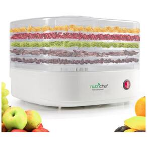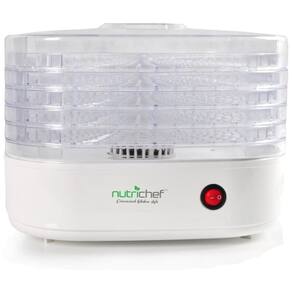 Modelo NutriChef AZPKFD06 Desidratador de alimentos de bancada elétrico, Preservador de alimentos Características Aparelho de cozinha de várias camadas Desidrata alimentos para preservação aprimorada Operação simples com um botão com resultados nutritivos Prazo de validade ideal para zenamento de alimentos a secagem faz com que os alimentos diminuam a desidratação Retém até 97 de vitaminas e minerais Alternativa mais saudável do que conservas ou congelamento Prepare lanches saudáveis para todas as idades Seca seus alimentos para reduzir a deterioração, resistente a manchas e fácil de limpar 5 Bandejas empilháveis de camada para circulação aprimorada de alto calor e fluxo de ar através de cada bandeja Funciona com uma ampla variedade de alimentos Carne, peixe, aves, frutas, legumes e mais uso para carnes para adicionar ensopados, sopas etc. Atinge a temperatura máxima de 82 C Tamanho da bandeja de alimentos únicos C x L x A 27,94x27,94x3,05cm Dimensões montadas C x L x A 27,94x 27,94x25,91cm Potência 120V Basta inserir sua comida nas bandejas e pressionar o interruptor para ativar um nível e saudável de preparação de alimentos. O desidratador de cozinha NutriChef trabalha efetivamente para remover a umidade, secar os alimentos e reduzir a deterioração. O tamanho compacto da mesa e as bandejas de vários níveis permitem um fluxo de ar melhorado, alimentos desidratantes para prolongar a vida útil e a preservação. Seus alimentos durarão mais e a remoção do teor de umidade é muito mais benéfica do que a conserva ou o congelamento. A desidratação com NutriChef retém até 97 do valor nutricional dos alimentos e é cientificamente testada para fazer com que os alimentos durem mais e o melhor de tudo, ainda é ótimo Depois de seca, sua comida manterá suas vitaminas, minerais e sabor autênticos Prepare alimentos como carne, peixe, aves, frutas, legumes e muito mais Economize tempo, economize dinheiro e economize um espaço valioso no gabinete, pois o processo de desidratação diminui sua comida, tornando a ideal para zenamento de alimentos ou estocagem para o inverno. Funciona muito bem com uma grande variedade de grupos de alimentos e é perfeito para preparar batatas fritas vegetarianas saudáveis e sem óleo para as crianças ou carne seca espessa para o pai. Reduza a deterioração e aproveite a preservação aprimorada dos alimentos com o desidratador de alimentos NutriChef