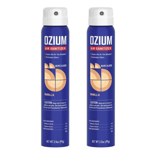 Ozium Desinfetante de ar de 100 ml e eliminador de odores para casas, carros, escritórios e muito mais, aroma de baunilha, pacote com 2