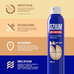 - Mais do que apenas um purificador de ar: o spray higienizador de ar OZIUM não é o seu aromatizador de ar típico de casa ou carro; faz com que os odores desapareçam reduzindo bactérias e germes causadores de odor. Apenas um spray curto limpa o ar com uma leve explosão de fragrância que desaparece com o odor; não há fragrância avassaladora ou avassaladora.